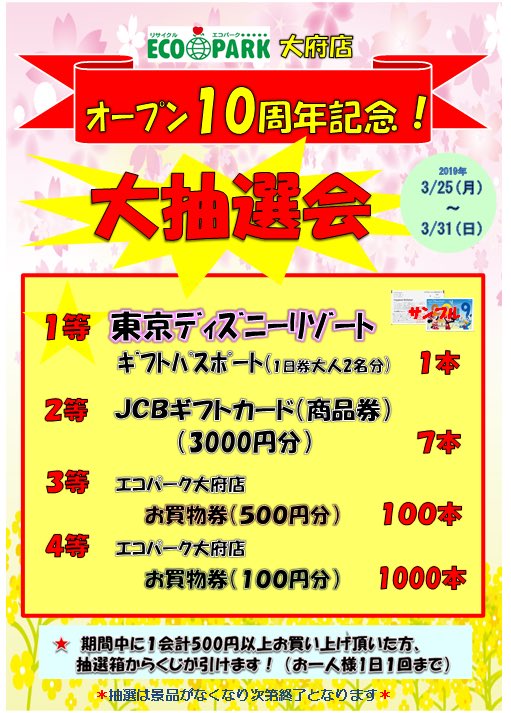 本日より3月31日までエコパーク大府店オープン10周年記念イベントを開催中です。